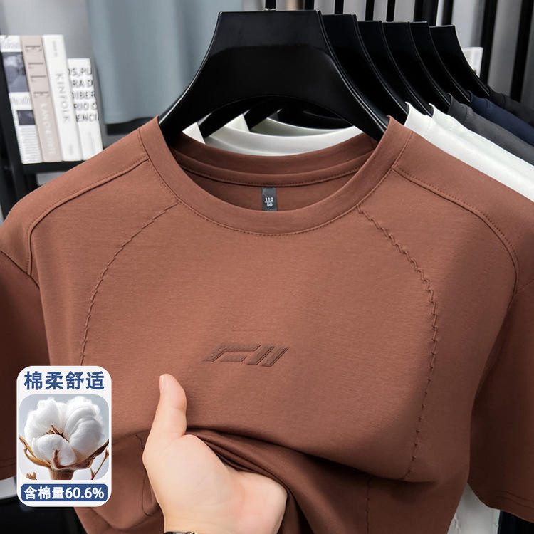【锦纶+提花面料】男士圆领短袖T恤 纯色基础款百搭上衣